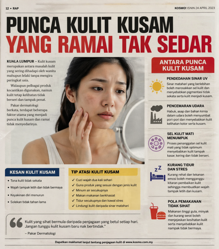 Kulit kusam kembali cerah & lebih sekata tanpa perlu tukar banyak produk